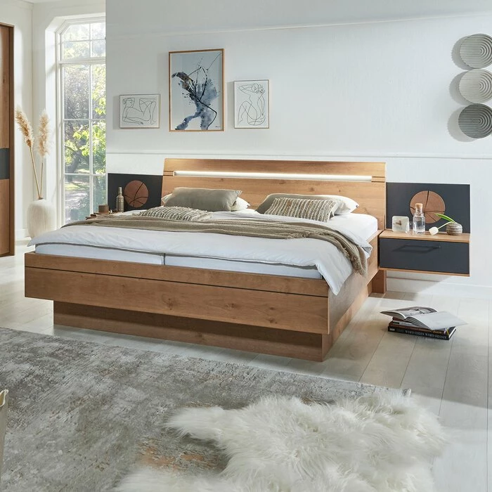 - Inklusive Holzkopfteil und schwebendem Fußteil