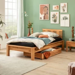 Matratze, Lattenrost, Nachttisch und Dekoration sind nicht im Lieferumfang enthalten