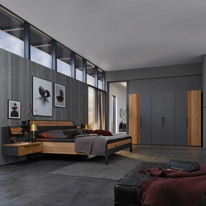- Kopfteilrahmen und Füße aus Metall in Lack Eisenglimmer