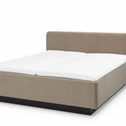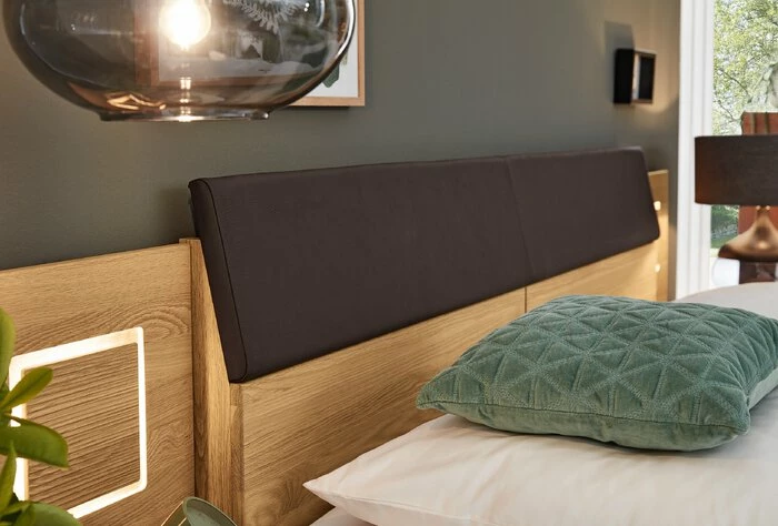 - Inklusive Polsterkopfteil in Lederoptik mocca