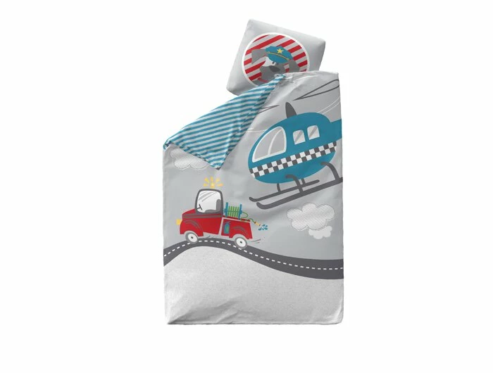 - Bezug aus Stoff im Motiv „Kleine Helden“, 100% Baumwolle