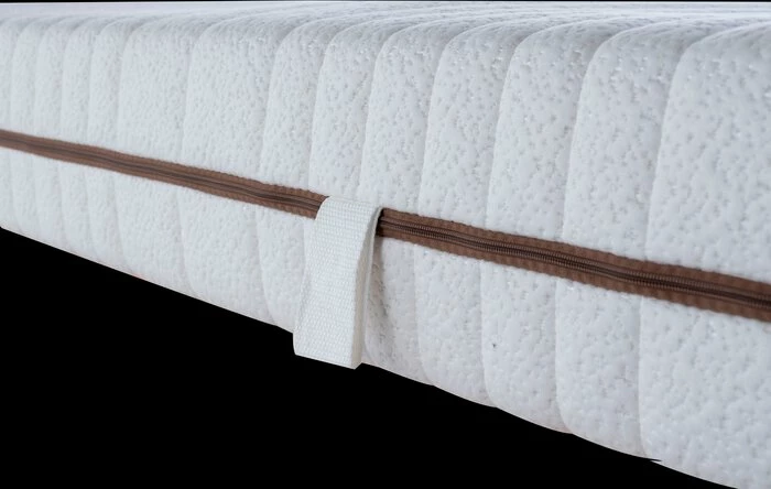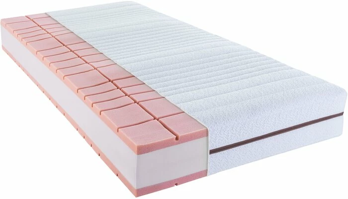 - Beckenkomfortzone, Schulterkomfortzone, Lendenstützzone und Kopf- und Fußzone. 7-Zonen Kaltschaumauflage mit einem hohen Anteil an Rizinusöl