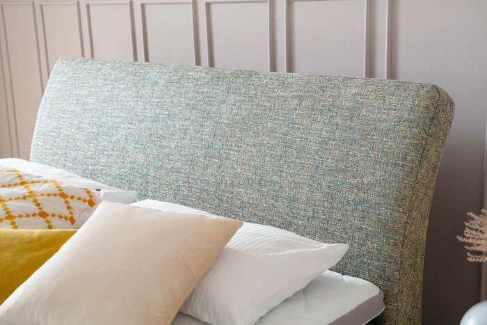 - Gestell aus Spanplatte mit Stoffbezug in türkis