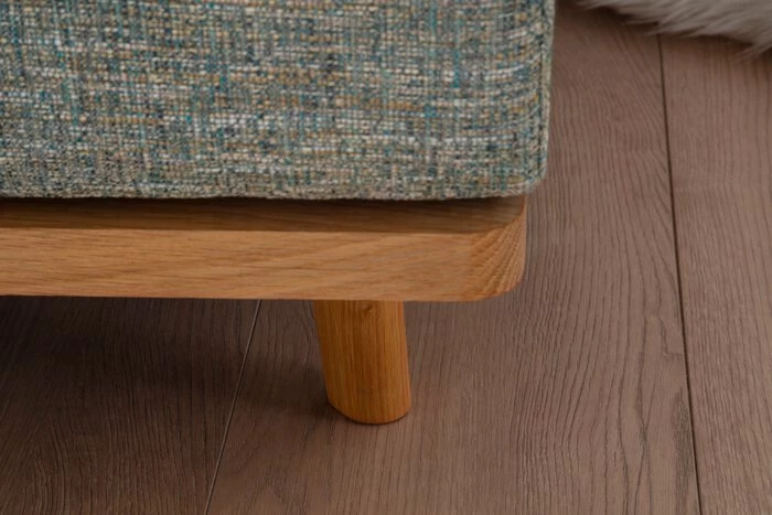 - Füße und umlaufender Holzrahmen aus massiver Eiche