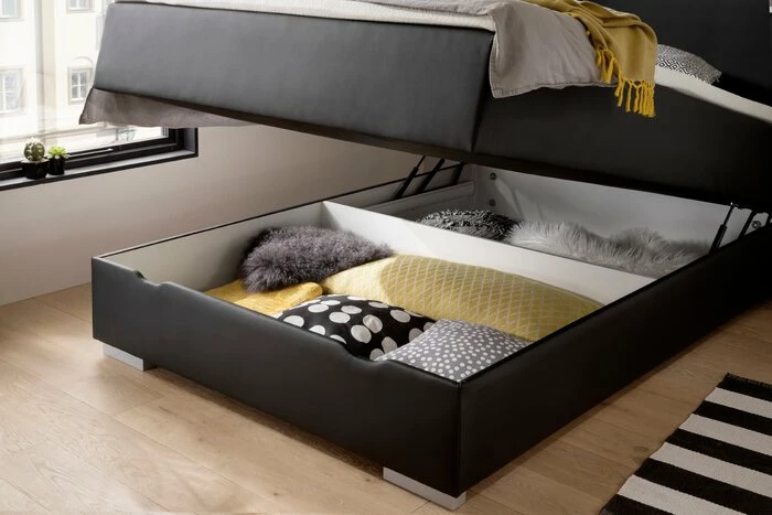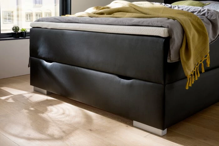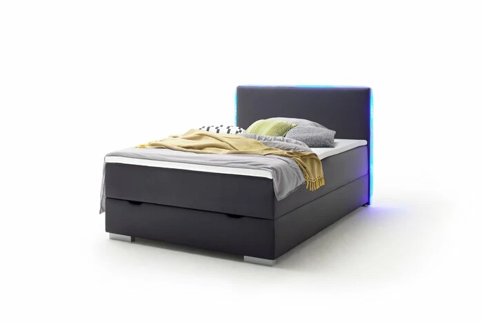 - Mit Bonellfederkernmatratze 120 x 200 cm, Bonell-Boxunterbau und Bonellfederkernmatratze befinden sich zusammen in einem durchgehenden Bezug