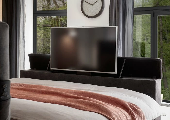 - Inkl. motorisierter TV-Halterung geeignet für Fernseher bis 40 Zoll und Bettkasten