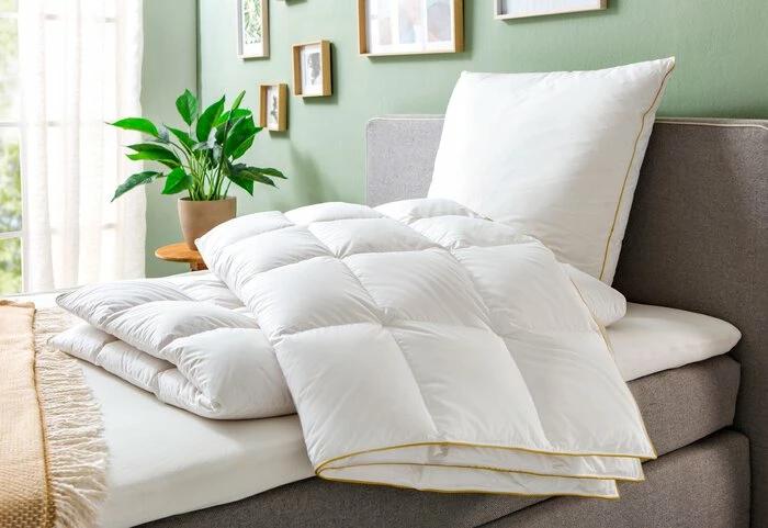 - Ganzjahresbettdecke, Füllung aus 100% weißen neuen Gänsedaunen, Klasse I