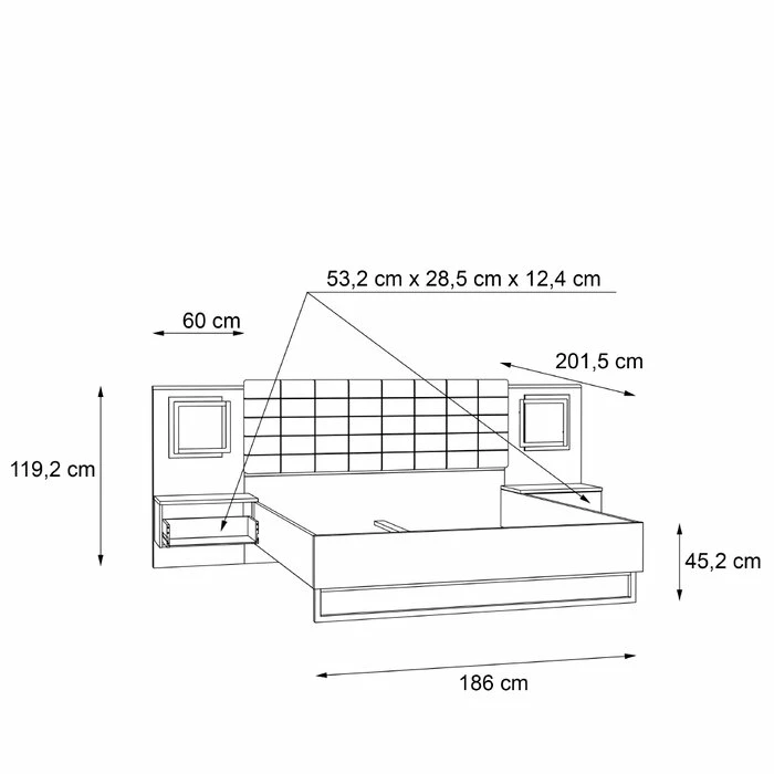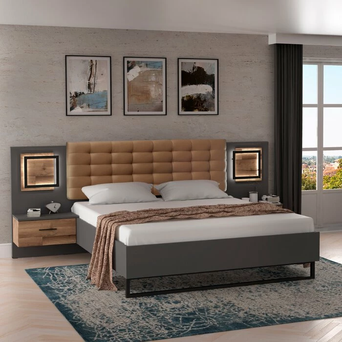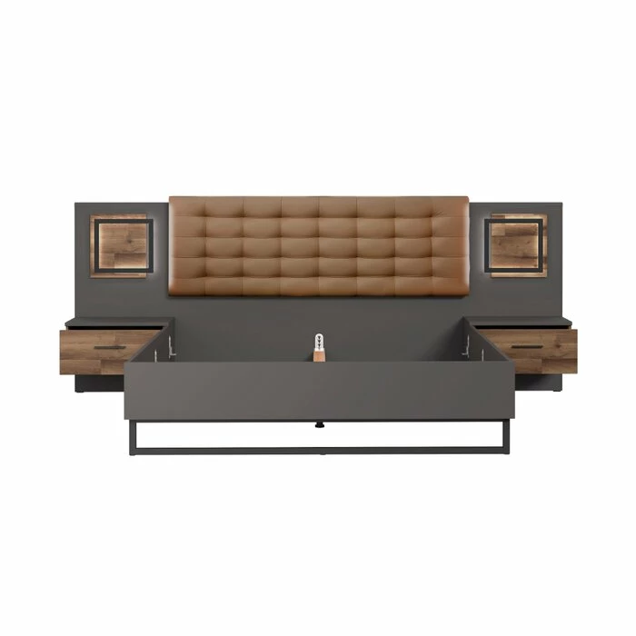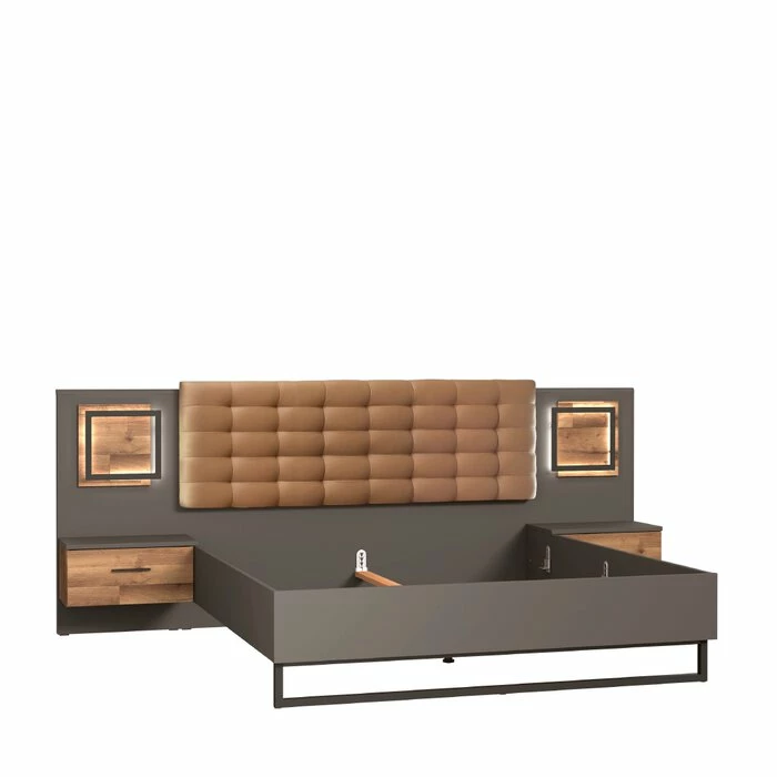 - Inkl. 2 Nachtkommoden mit je 1 Schubkasten, Griffen in schwarz und LED-Beleuchtung mit Touch Funktion