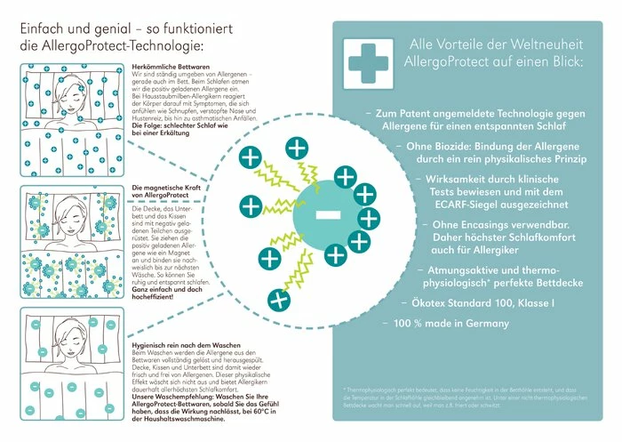 - Ganzjahresbettdecke, Füllung aus Allergofill Microfaservlies mit Antiallerger-Ausrüstung (100% Polyester)