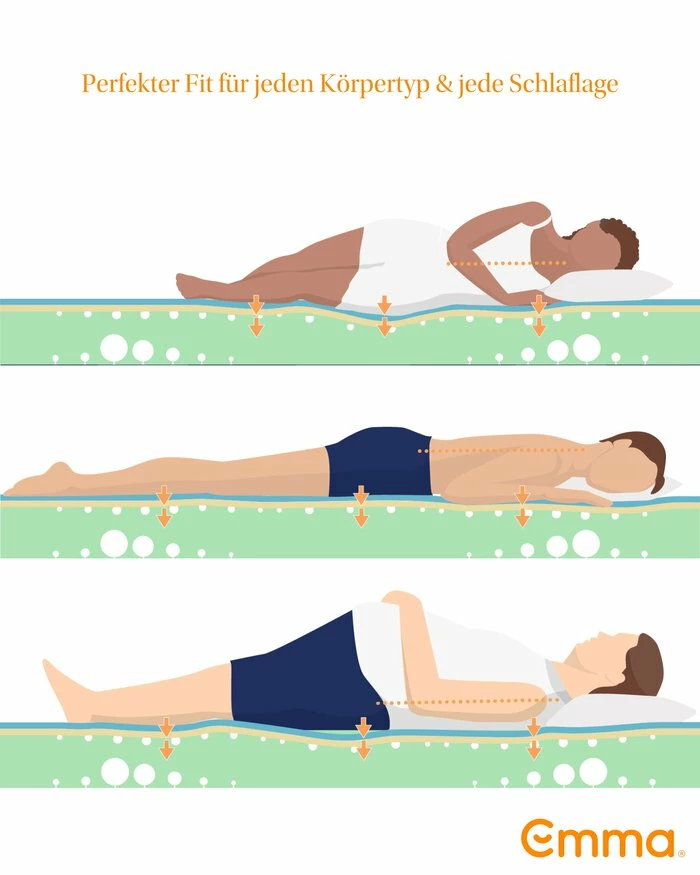 - Adaptiver Viskoschaum passt sich der Schlafposition und Körperkontur an, Druckentlastung bei jeglicher Gewichtsbelastung wird ermöglicht