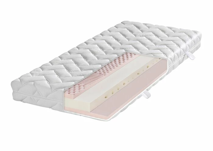 - 7-Zonen-Aufbau mit Kombi-Kaltschaumkern (innen: Konturenkaltschaum, oben/unten Kaltschaumnoppenplatte)