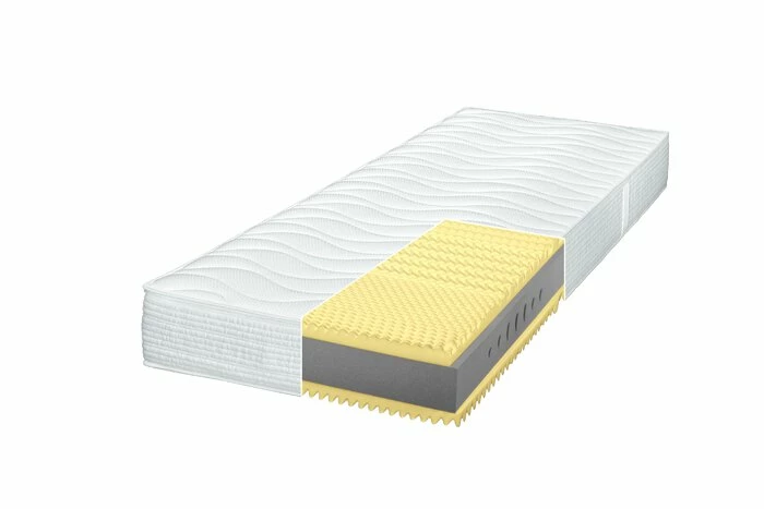 - 7-Zonen-Aufbau mit Waterpur50-Kaltschaumkern (Höhe: 12 cm ) und beidseitiger Kaltschaum-Noppenplatte (Höhe: 4 cm) für eine optimale Körperunterstützung
