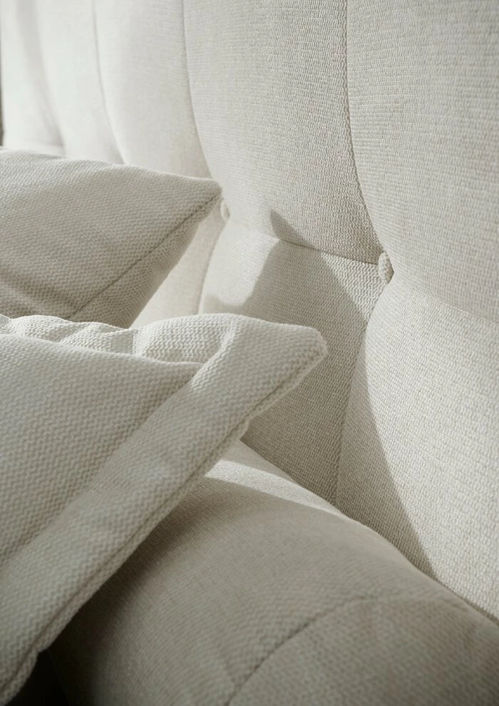 - Gestell aus Spanplatte mit Stoffbezug in weiß