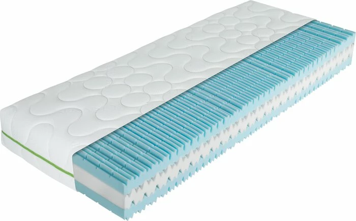 - Punktelastischer 7-Zonen-Kaltschaumkern mit Querbelüftung, Beckenkomfortzone, Schulterkomfortzone, Lordosestütze, Kopf- und Fußzone