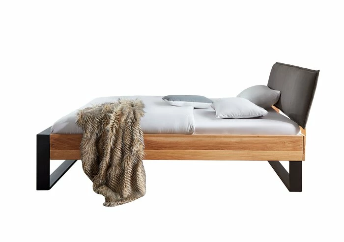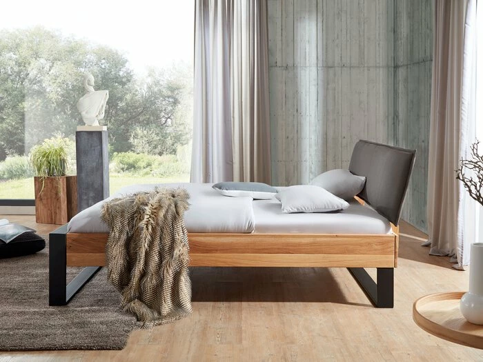 - Aus Eiche Massivholz geölt, Polsterkopfteil aus Stoff in Anthrazit