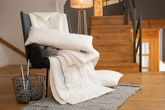 - Ganzjahresbettdecke, Füllung aus 80% europäischer Schafwolle, 20% Polyactid