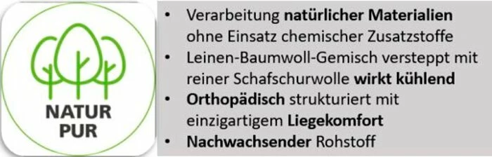 - Bezug Oberseite aus Leinen-Baumwoll-Gemisch versteppt mit reiner Schafschurwolle, wirkt kühlend