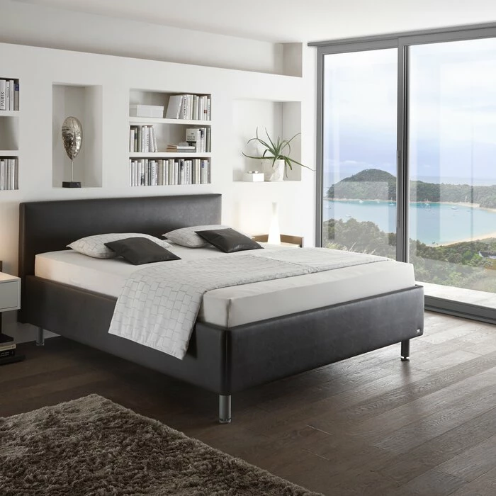 - Bettrahmen aus Spanplatte mit Bezug in Lederoptik schwarz