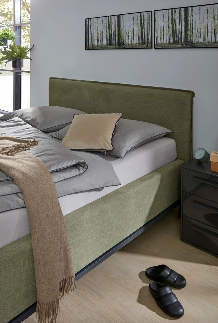 - Gestell aus Spanplatte mit Stoffbezug in grün