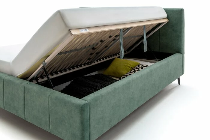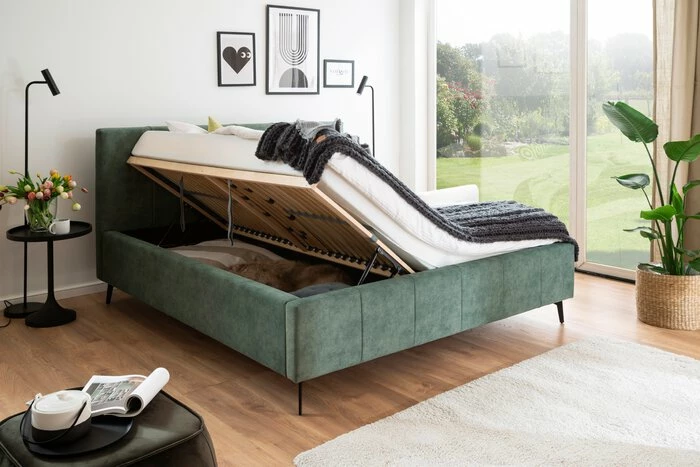 - Inklusive Bettkasten und seitlich zu öffnende Federholzrahmen