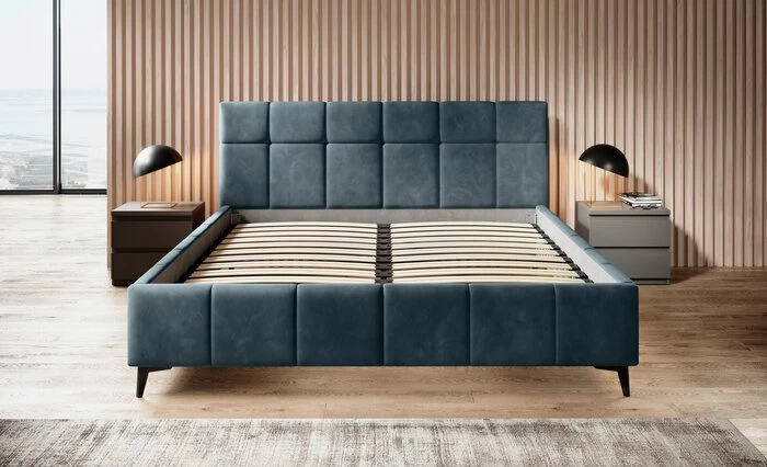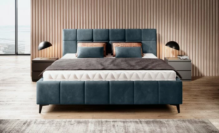 - Aus Holzwerkstoff bezogen mit Stoff in Dunkelblau