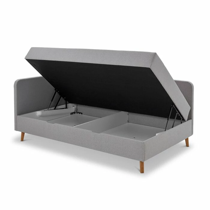 - Inkl. Bettkasten seitlich klappbar, Kopfteil links und rechts montierbar