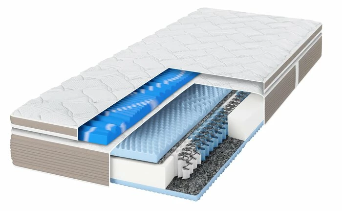 - Matratze mit 7-Zonen-Tonnentaschenfderkern mit ca. 1000 Federn bei LF 100×200 cm und körperentlastender Schulter- und Beckenzone