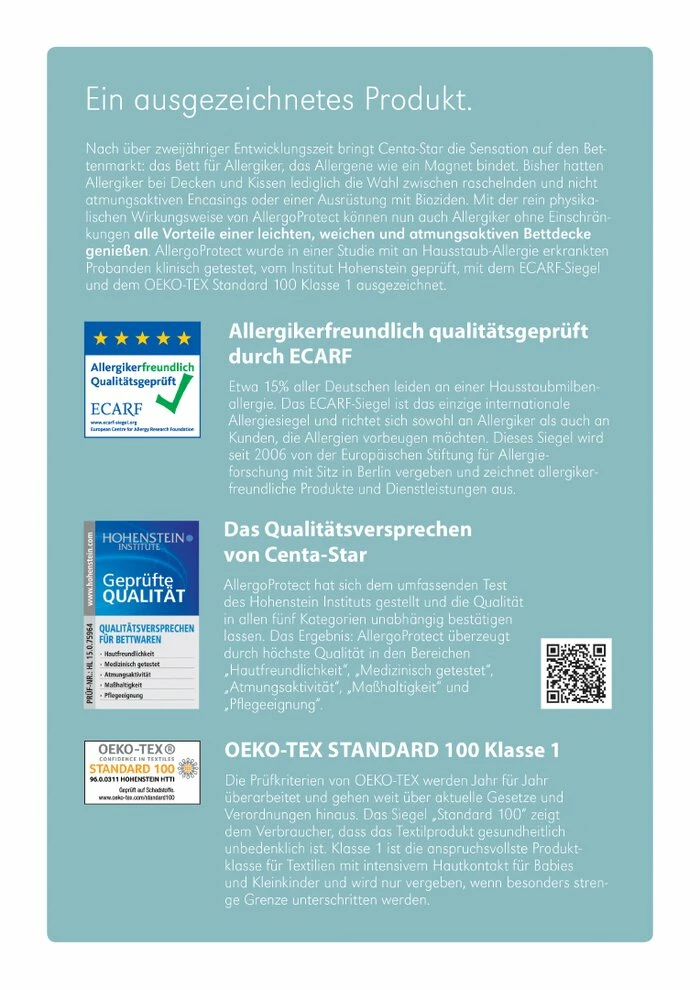 | Eignung: | für Hausstauballergiker geeignet |